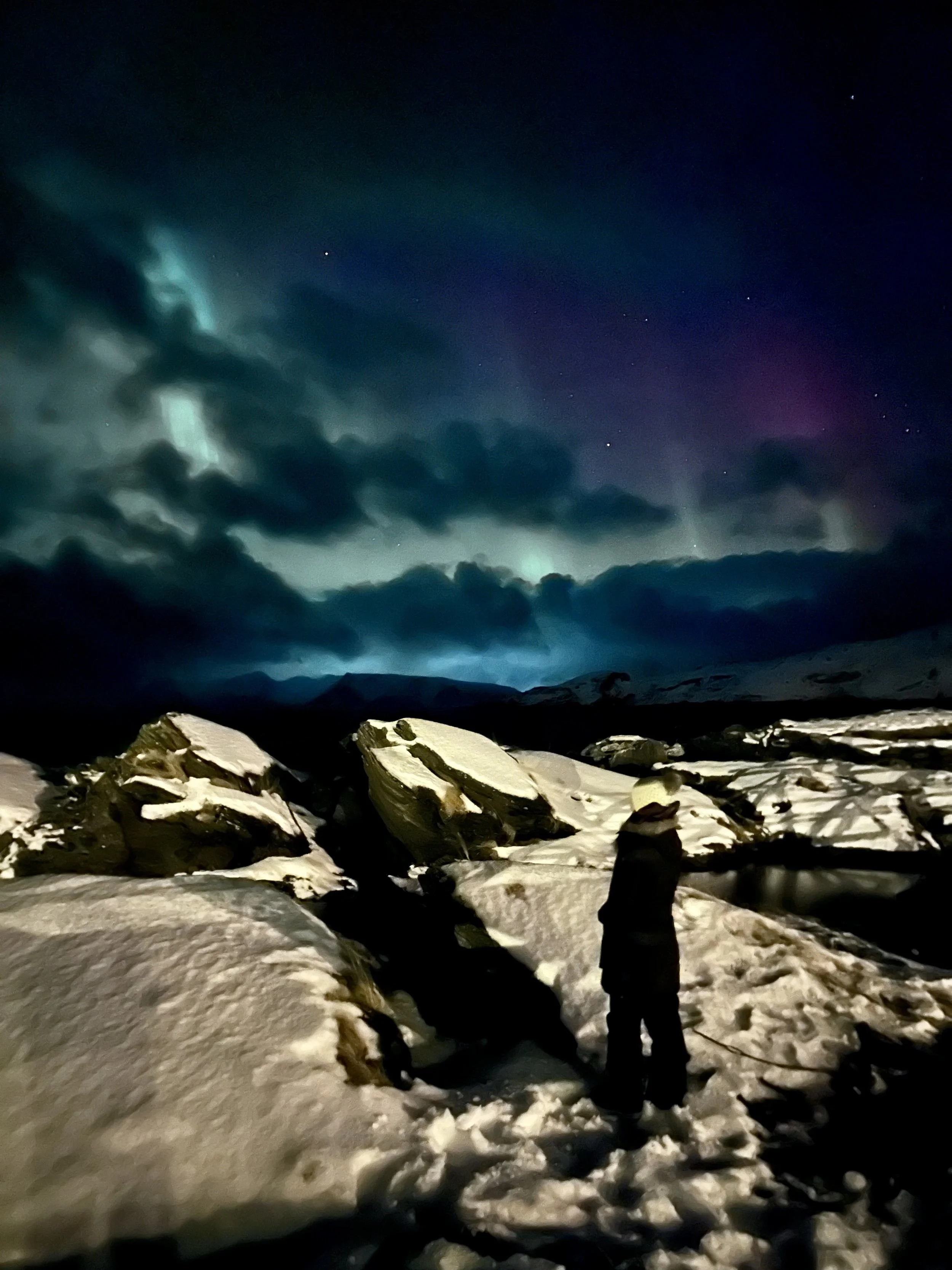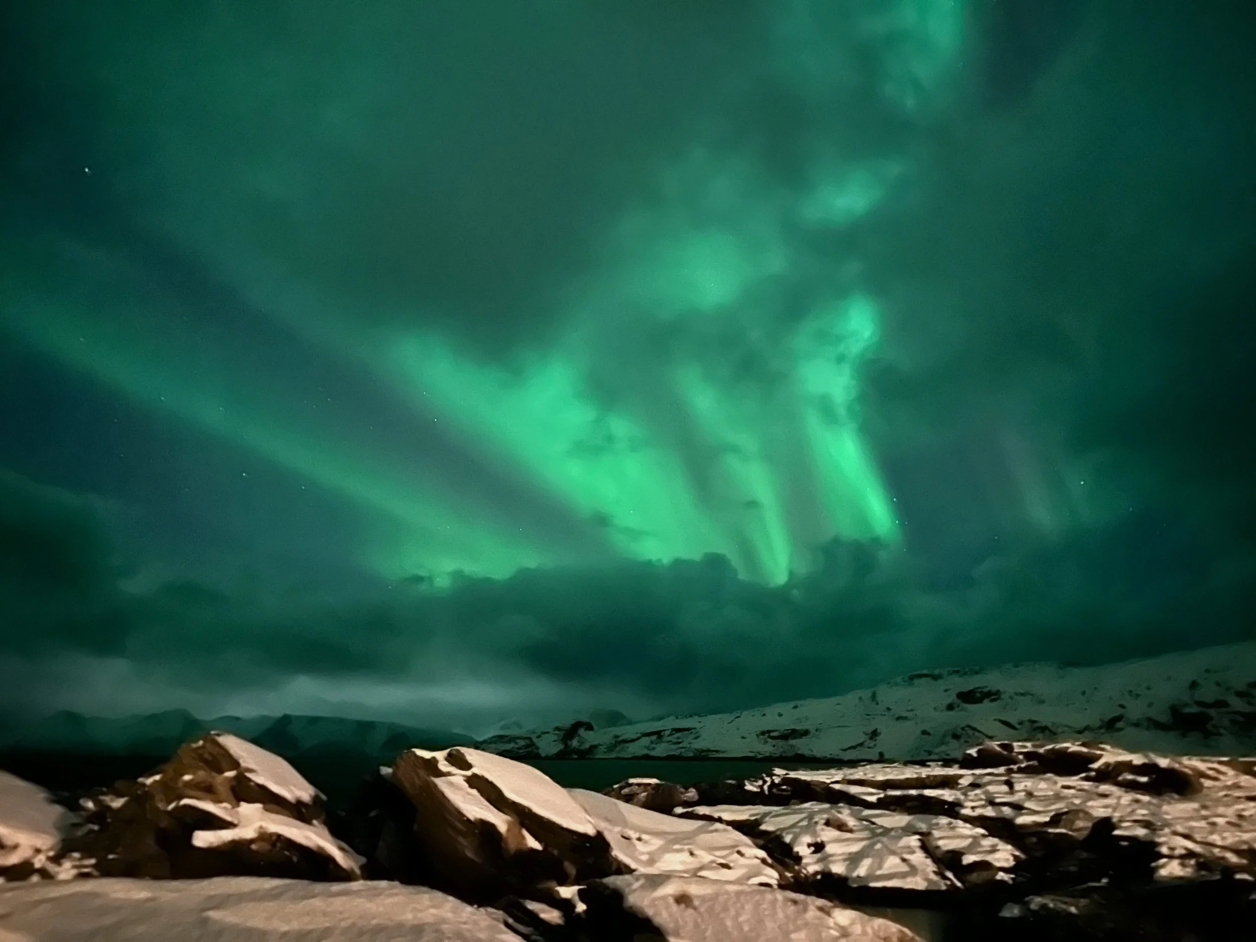 I personally figured out that if I went out for a short time, like a 5-20 min walk between buildings, I don’t usually get cold with 3-4 layers (a thin or thick thermo layer, a normal long sleeve, a down jacket, and sometimes a rain proof shell; thermo leggings, normal trousers). Hat and scarf optional. But if I go out for a while and not moving much (eg. watching the stars or northern light) I usually need to add a few more layers (thick thermo, fleece, vest, thin down jacket; thick ski pants) and definitely hats and gloves. Hands can get really cold if you’re taking photos or need to handle things, so thin gloves and hand warmers are super handy. I brought a whole bunch of hand and feet warms with me but hardly used them (as I was out on the water all of the days and they don’t work once they get wet).
